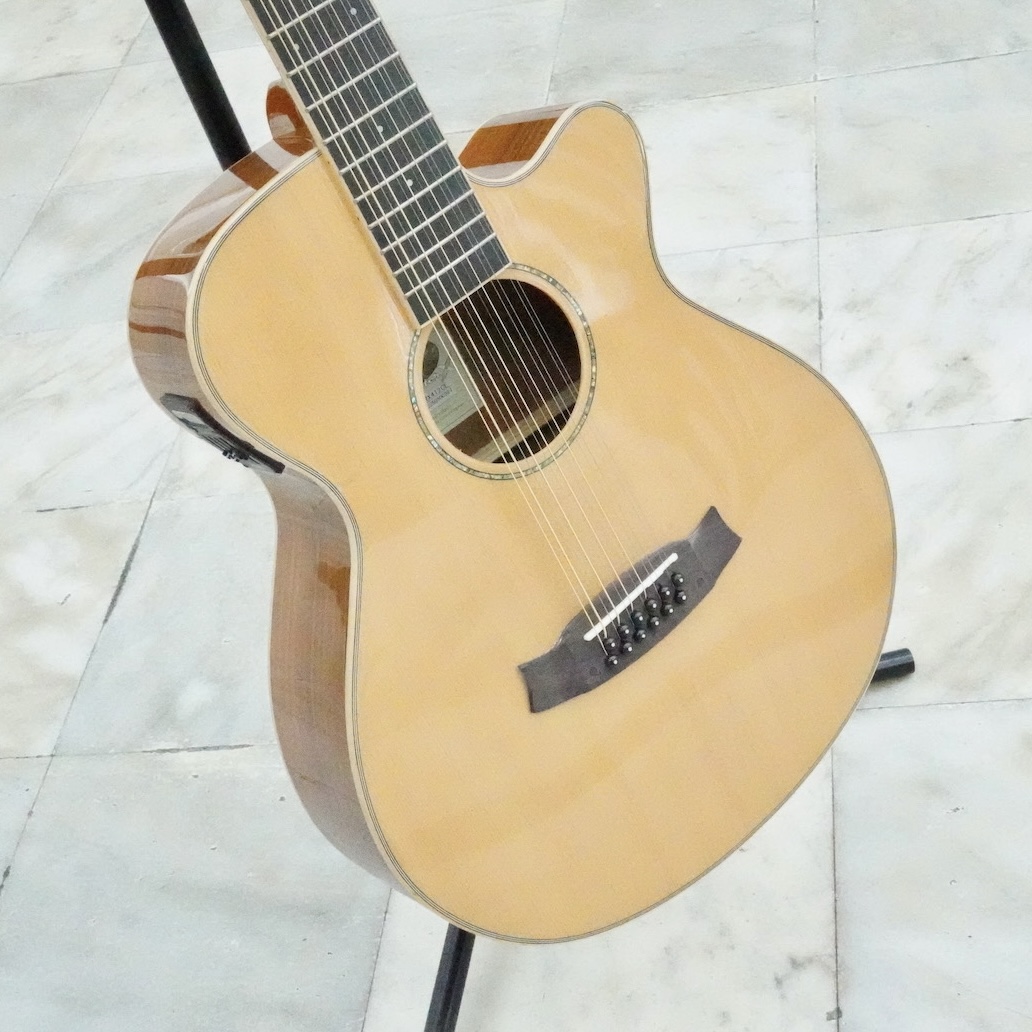 The Roadster X series TRX412CE guitar is a stunning 12-string instrument that offers musicians a rich, full-bodied sound paired with exceptional craftsmanship. Designed with a Super Folk Cutaway body shape, this guitar provides an ergonomic feel, making it easier to play while still offering remarkable tonal projection. The cutaway feature ensures that players can comfortably access the higher frets, which is particularly useful for those who enjoy intricate melodies and solos.