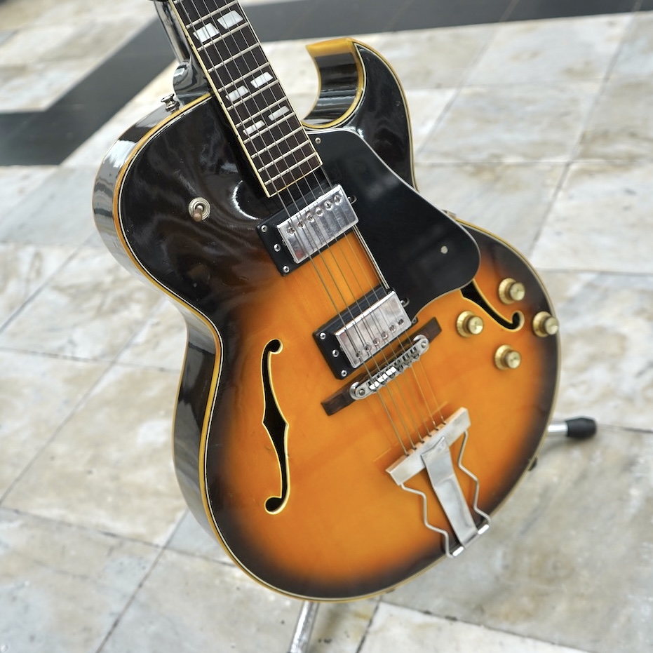 Magnificent ES-175 style jazz guitar from Ibanez. This one is in well played condition but plays and sounds great. Some lovely age in the binding (as can be seen in the photos).