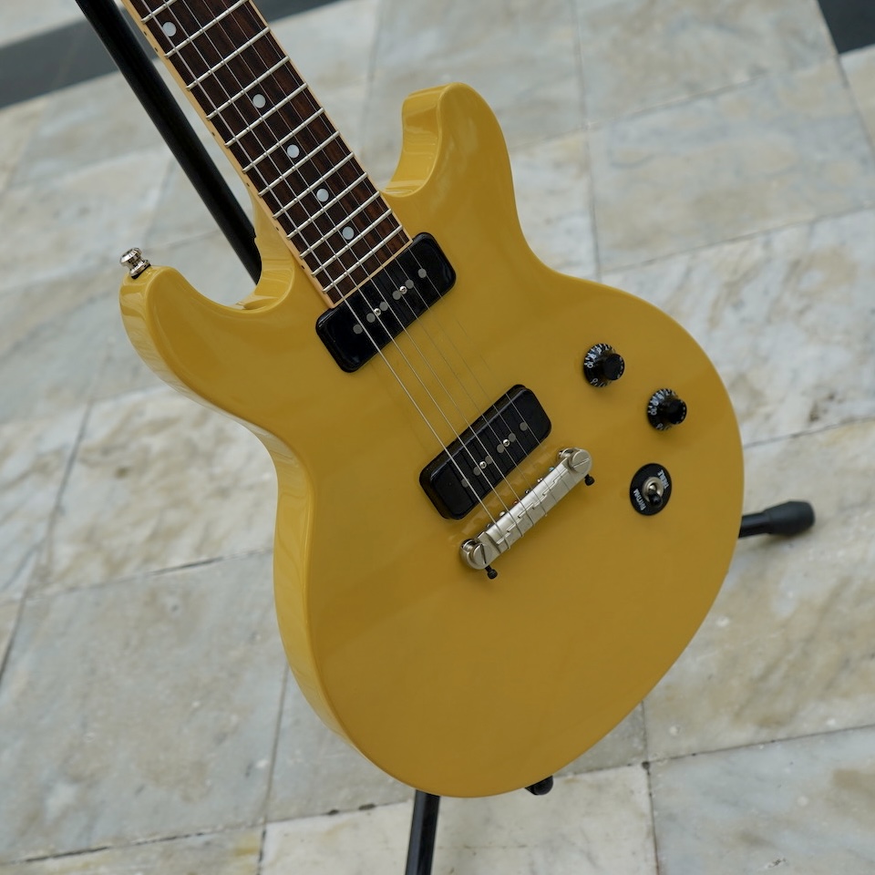 This example is finished in a transparent yellow and has the common (for 2015 models) modification of having standard machine-heads fitted (originally had the robot tuners - included).
